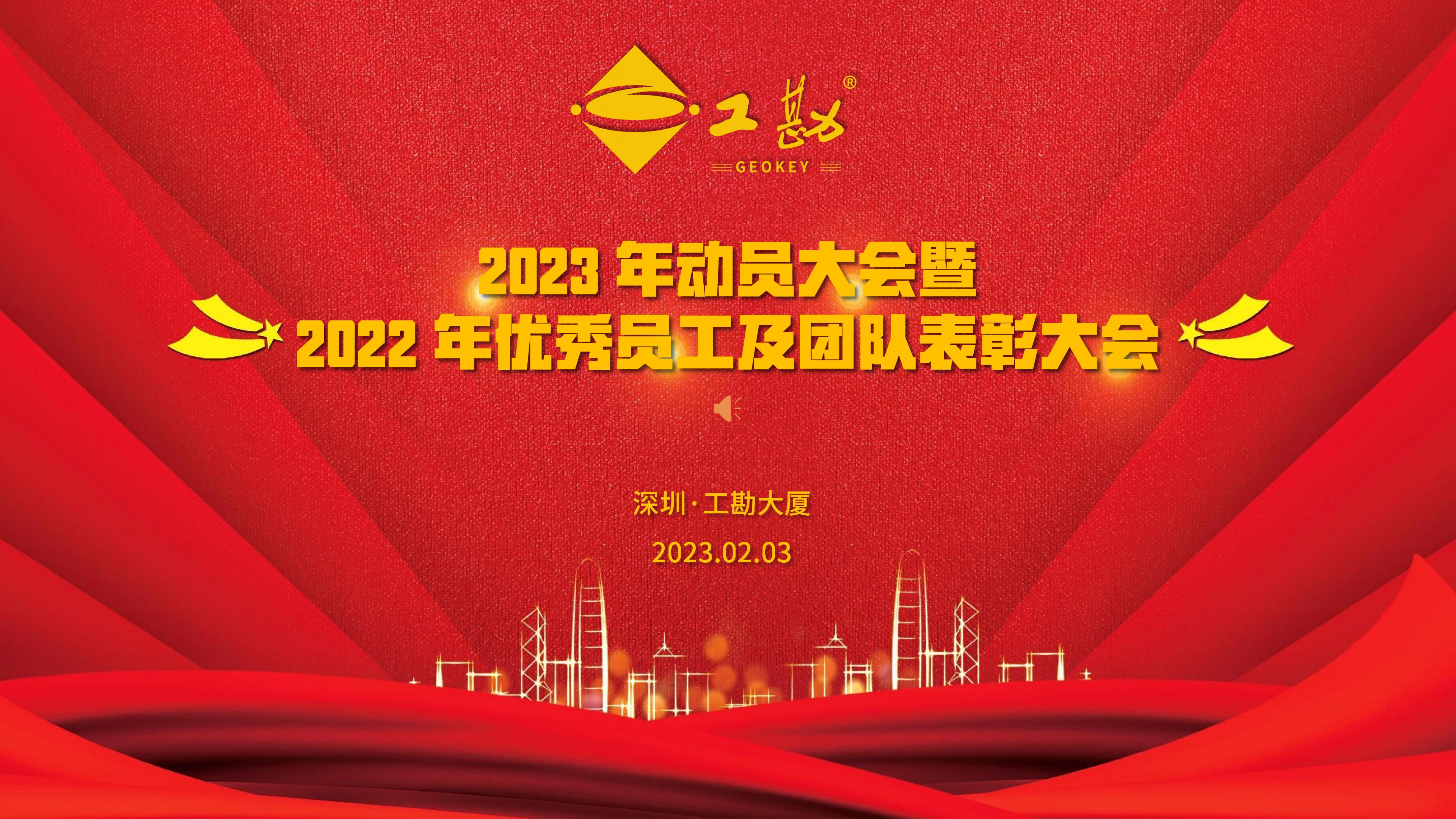 春来万象新,奋斗正当时。2月3日,工勘建设隆重举行“2023 年动员大会暨2022 年优秀员工及团队表彰大会”。工勘建设集团董事长林浩平、总裁朱峰等公司高管及公司全体员工参与本次会议。